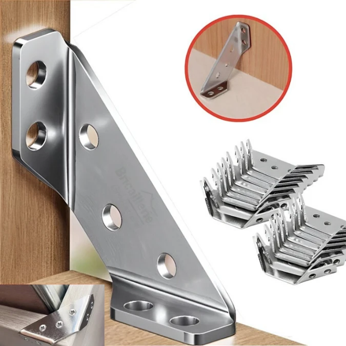Fabriquées en acier inoxydable de haute qualité, ces équerres résistent efficacement à la corrosion, à l’humidité et à l’usure quotidienne, garantissant une longue durée de vie même dans des environnements exigeants. Leur design triangulaire à trous multiples offre une grande flexibilité d’installation et s’adapte à une large variété de projets, du bricolage domestique aux travaux professionnels.