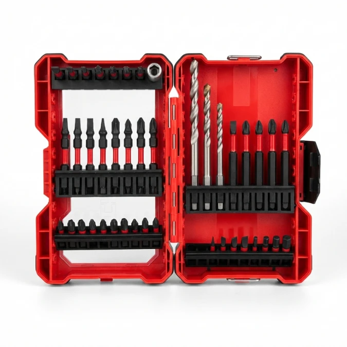L’ensemble est livré dans un boîtier de rangement robuste de couleur rouge, pratique pour le transport et le stockage, garantissant une organisation optimale et une longue durée de vie des accessoires.