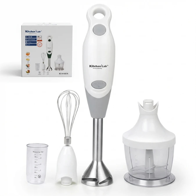 Simplifiez toutes vos préparations culinaires avec le bras mixeur plongeant 4 en 1 KitchenLab, un appareil multifonction conçu pour mixer, fouetter, hacher et mesurer avec précision. Compact et puissant, il devient rapidement l’allié indispensable de votre cuisine au quotidien.