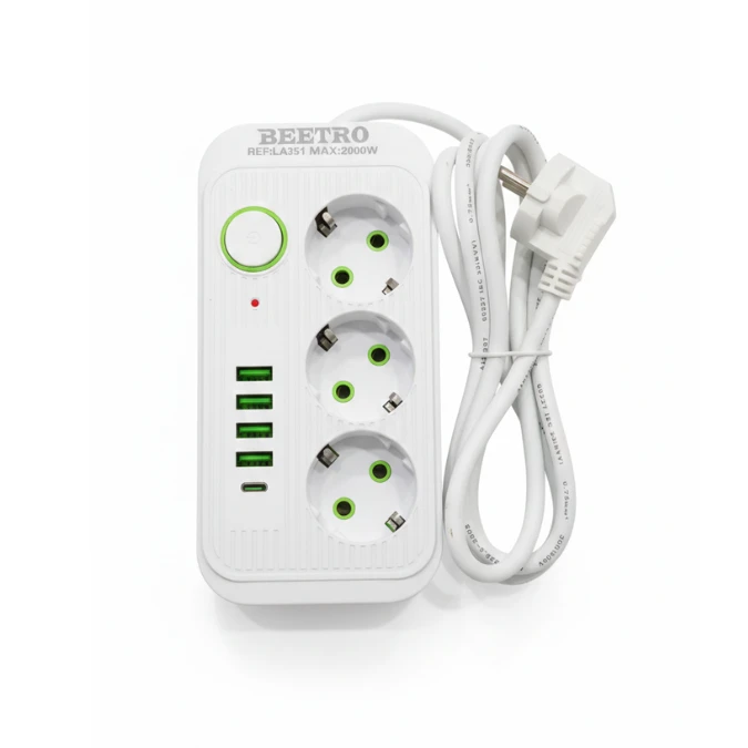 La multiprise Beetro LA351 est la solution idéale pour alimenter et recharger plusieurs appareils en toute simplicité, à la maison comme au bureau. Conçue pour allier performance, praticité et sécurité, elle répond parfaitement aux besoins modernes en connectivité.