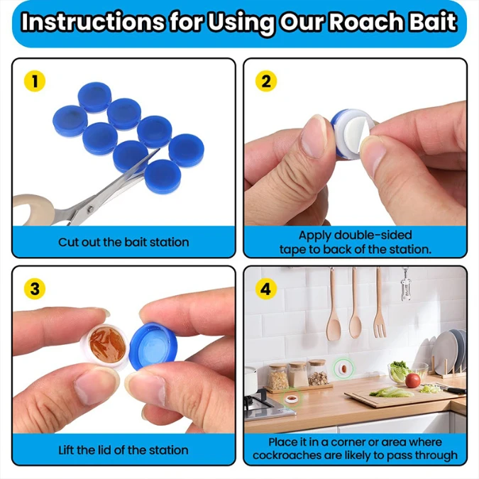 Placez-la dans les zones infestées (cuisine, salle de bain, coins, derrière les meubles)